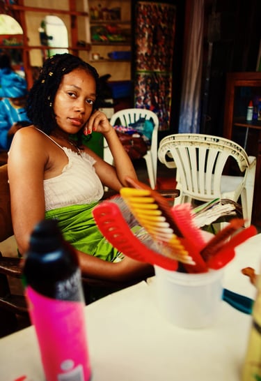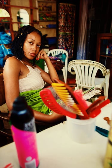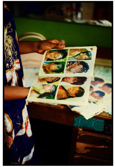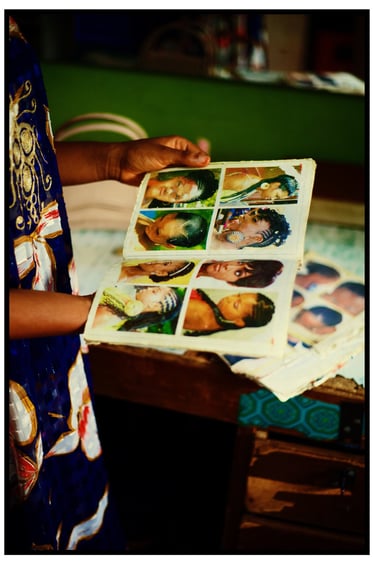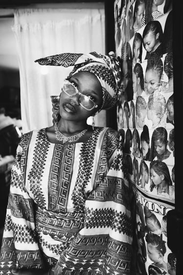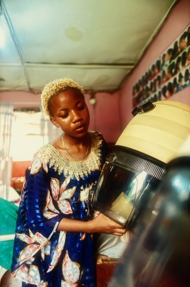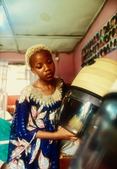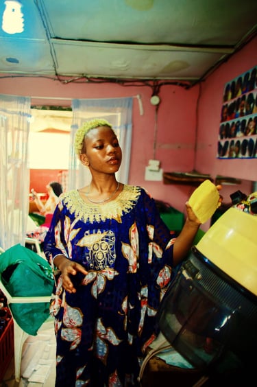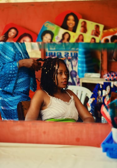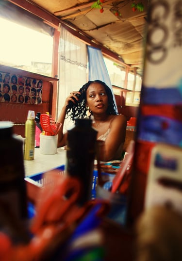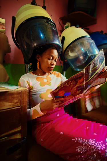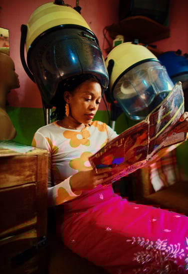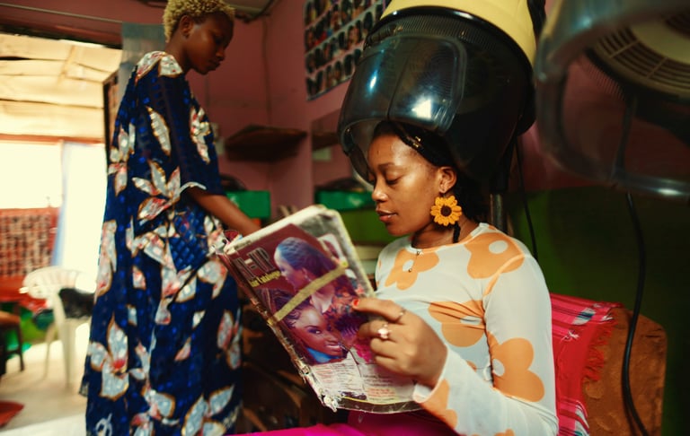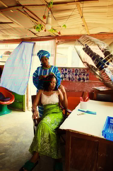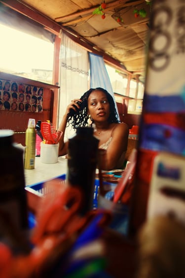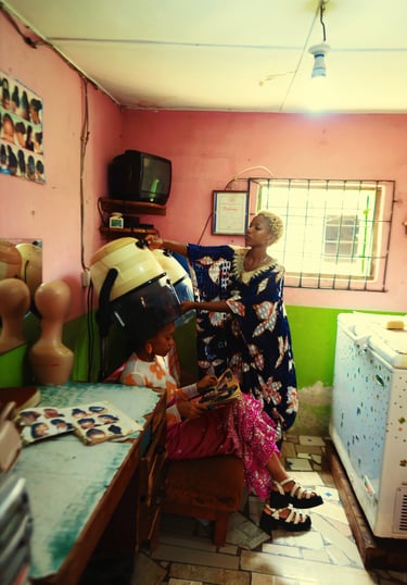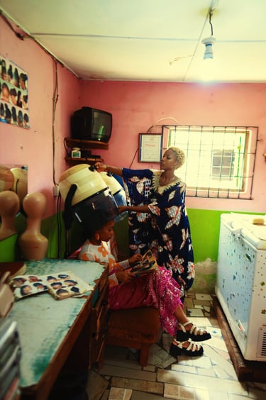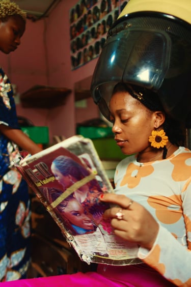 They call her Aunty Biola around here. She's more than just a hairdresser; she's a magician with those scissors and combs.