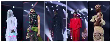 Nitemi showcased beadwork, weaving, and ultra-feminine silhouettes. Soft, intentional, and rooted in handcraft. Samuel Cray's presentation was defined by clean tailoring and strong structure. Confident, precise, and consistently executed. Benard Samuel's showcase featured a textile-driven approach featuring dyed fabrics, batik-style letter prints, and woven textiles mimicking block-print typography. A thoughtful study of pattern and surface.