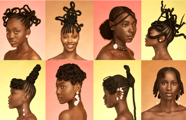 Imagine the timeless elegance of classic and vintage african glamour hairstyles meeting the bold, artistic expression of today. The visuals are a fusion of vintage and avant-garde aesthetics with minimal but striking artistic details that not only evoke nostalgia but also challenge traditional beauty standards.